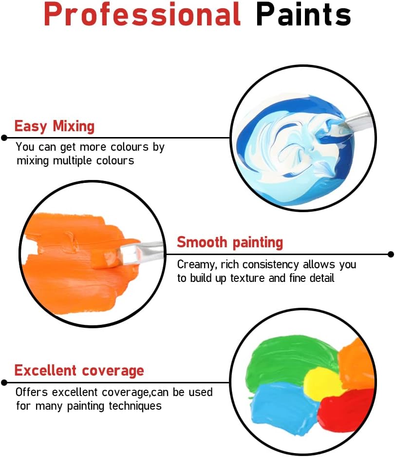 4. SAFE, NON-TOXIC - The acrylic paint sets are certified by ASTM D4236 and EN71 as non-toxic and safe, so there is no need to worry about the toxicity of acrylic paints. Recommended Age Range: 3 Years & Up.