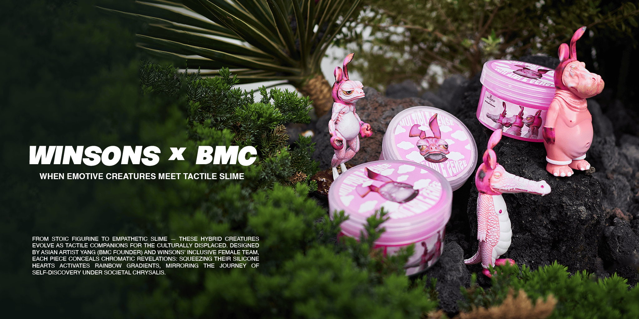 The trio brings BMC’s emotionally rich hybrid creatures together with three of WINSONS’ signature slime textures. Each texture is carefully chosen to reflect the unique personality of its character. Infused with delicate pigments and a distinct emotional tone, every slime is more than just a toy — it’s a tactile extension of the world of WINSONS.
