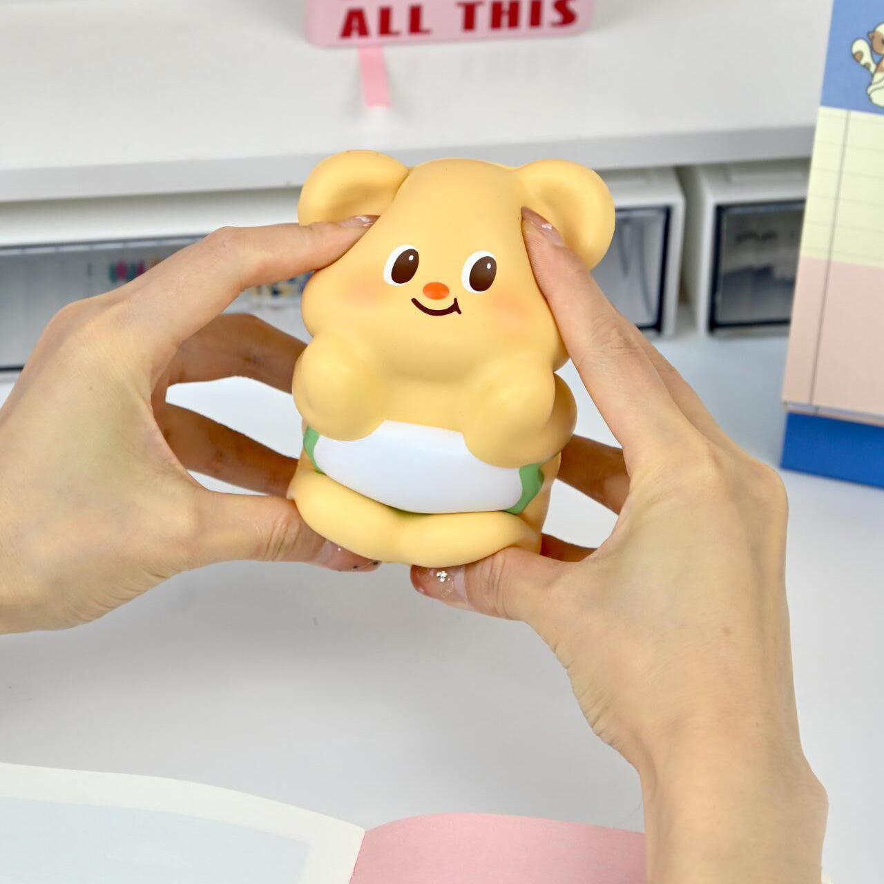 This super soft Butter Bear is the ultimate stress-reliever! 💆♀️💕 Made from slow rebound PU material, it offers a soft touch and slow return, giving you a soothing experience with every press. 😌💖 Not only is it a cute cartoon figurine, but it’s also a perfect tool for everyday stress relief! The adorable bear design makes every press fun and comforting. 🐻💫