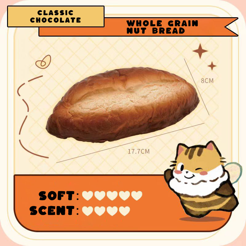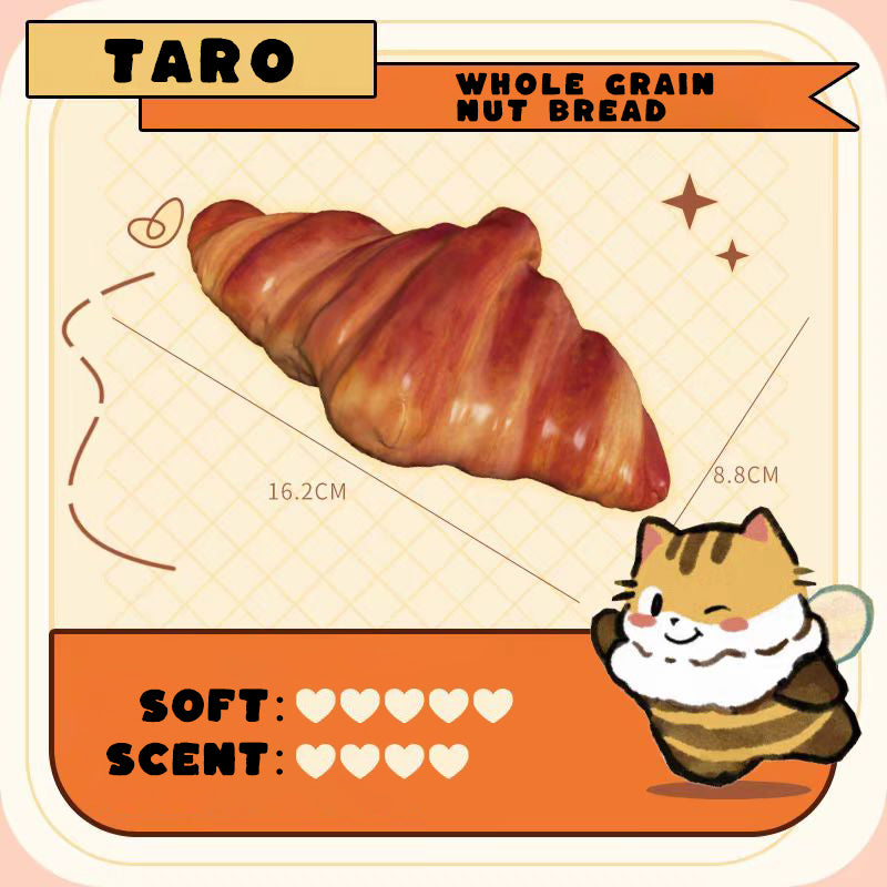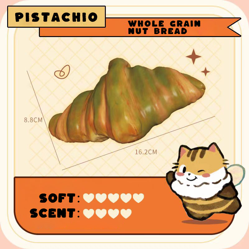 Kawaii Croissant Squishy Toy Collection - Realistic Whole Grain Bread Slow Rising Stress Relief Squeeze Toy (Roasted Almond Caramel, 17.8cm)"