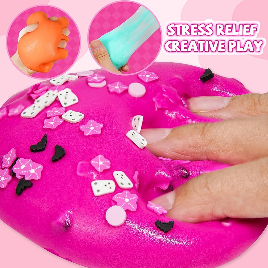 Slime play helps reduce stress, enhance focus, and promote relaxation. The tactile experience supports fine motor skills, creativity, and emotional regulation, making it a fun and calming activity for kids.
